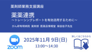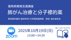 ■開催日時:2025年11月9日(日) 13:00~14:30■開催方法:Web(Zoom)による遠隔研修会■受講料:1,000円(昭和薬科大学6年制卒業生は無料)■認定薬剤師研修単位:1単位■学習到達目標:「肺がんに対 […]